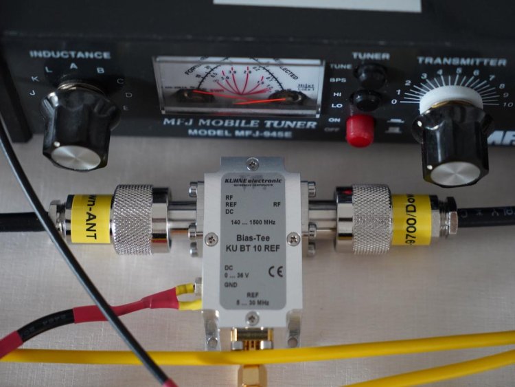 QO-100 - Satellite - Equipment; ICOM IC-9700, Kuhne Up-Converter, Kuhne Down-Converter, Kuhne Einspeisung, GPSDO (Leo Bodnar)